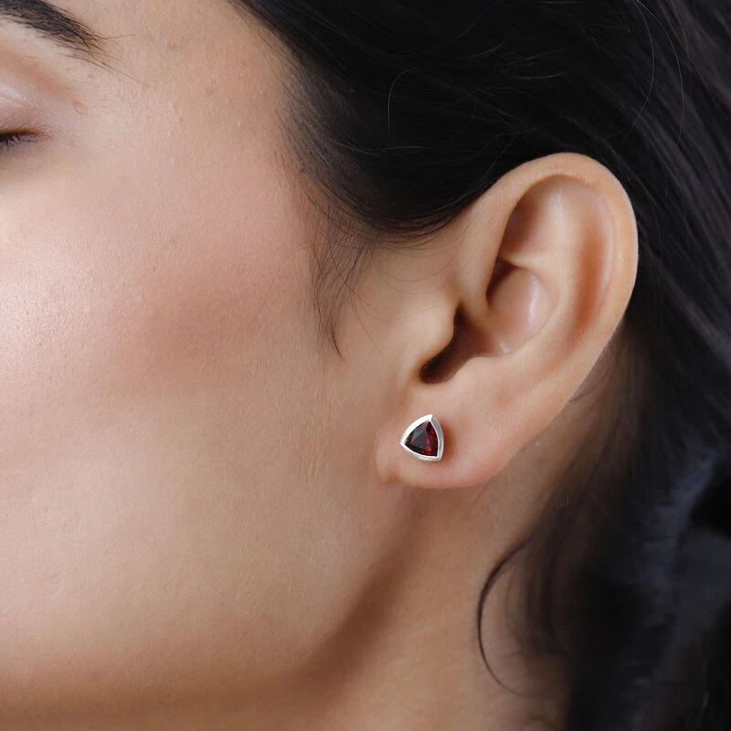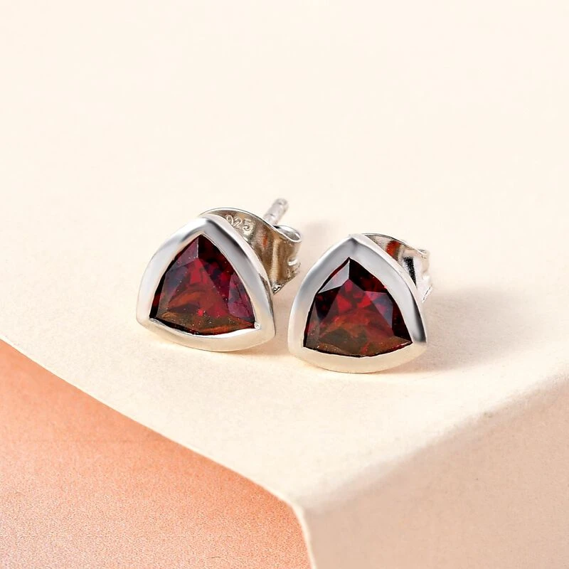 Mosambik Granat Ohrringe 925 Silber Platiniert Ca. 1.80 Ct