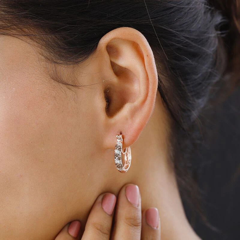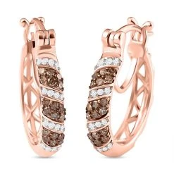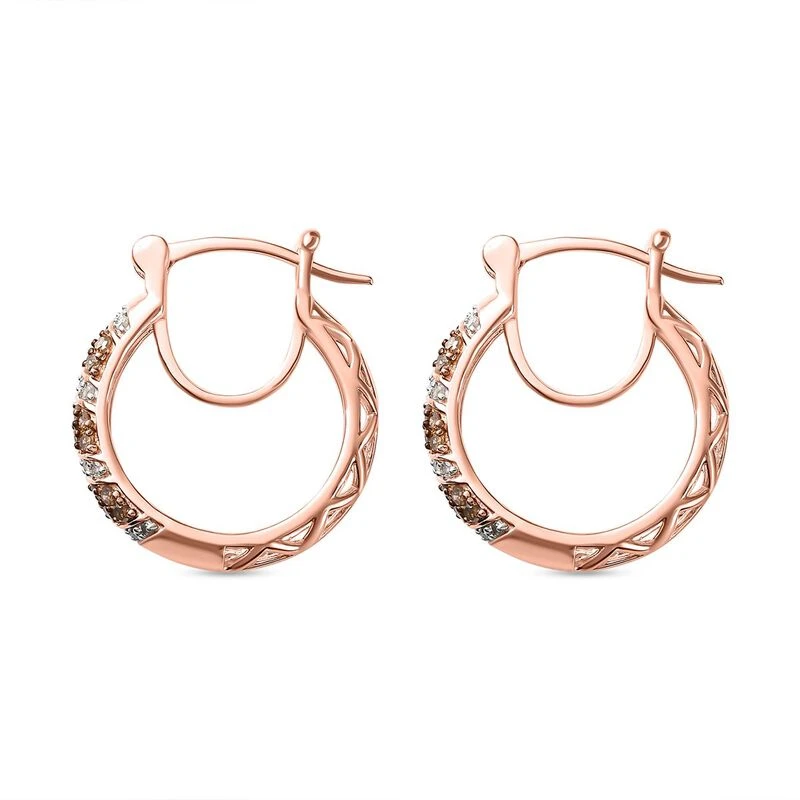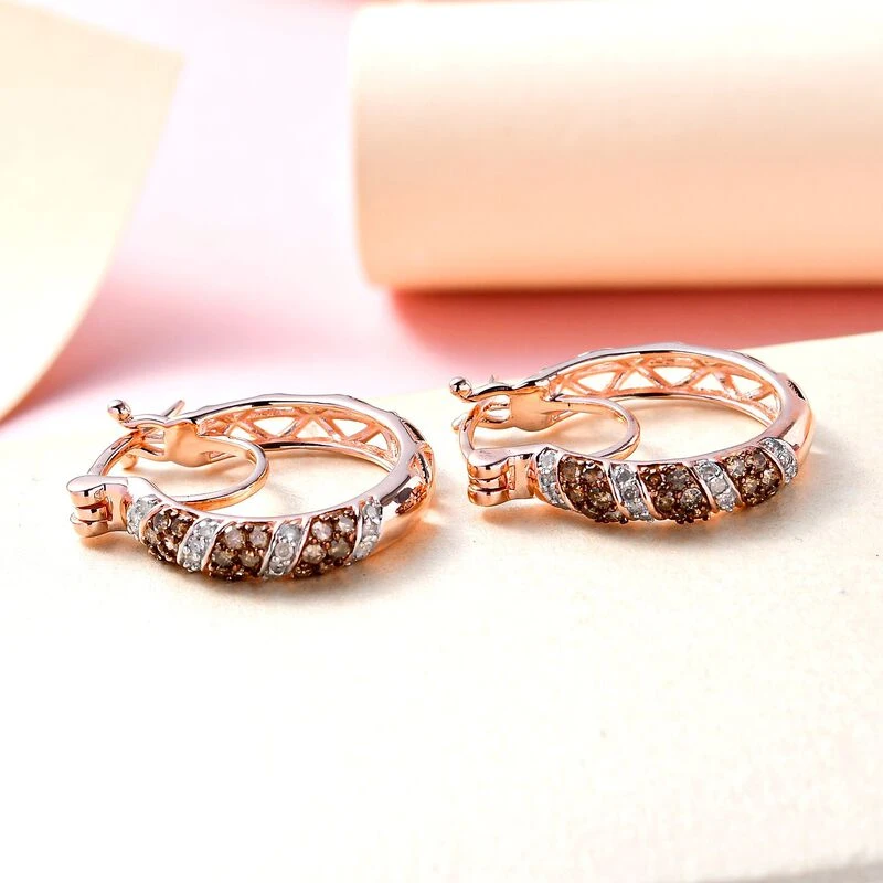 Natürliche Champagner Diamant Creolen, 925 Silber Roségold Vermeil Ca. 0.50 Ct