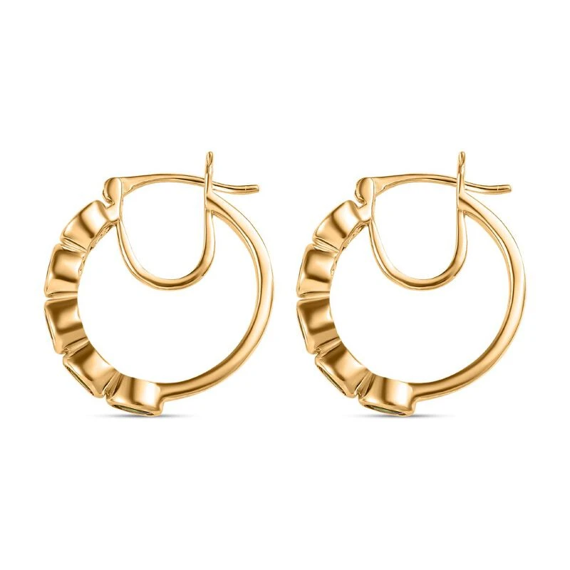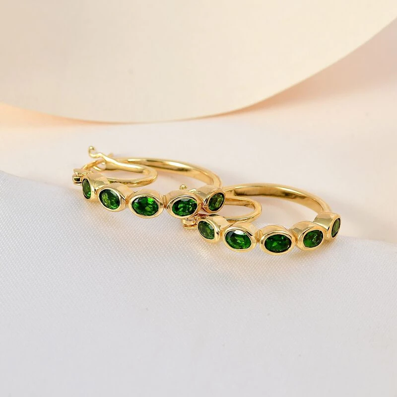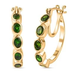 Natürliche Chromdiopsid Creolen, 925 Silber Vergoldet Ca. 2.00 Ct