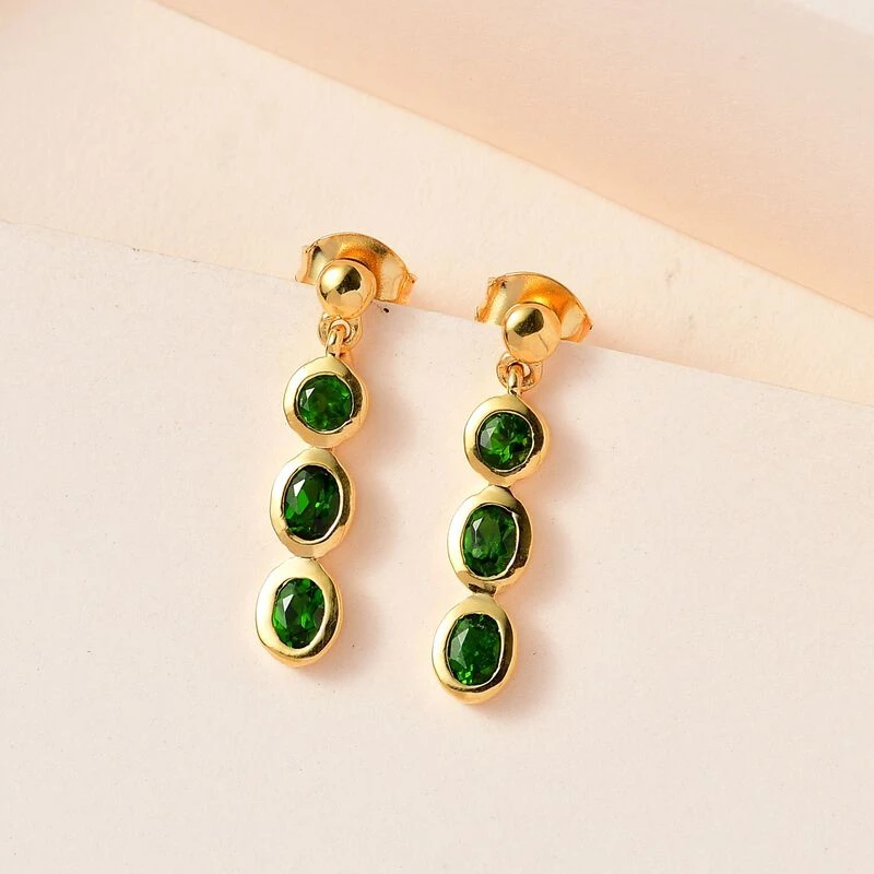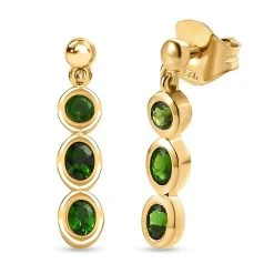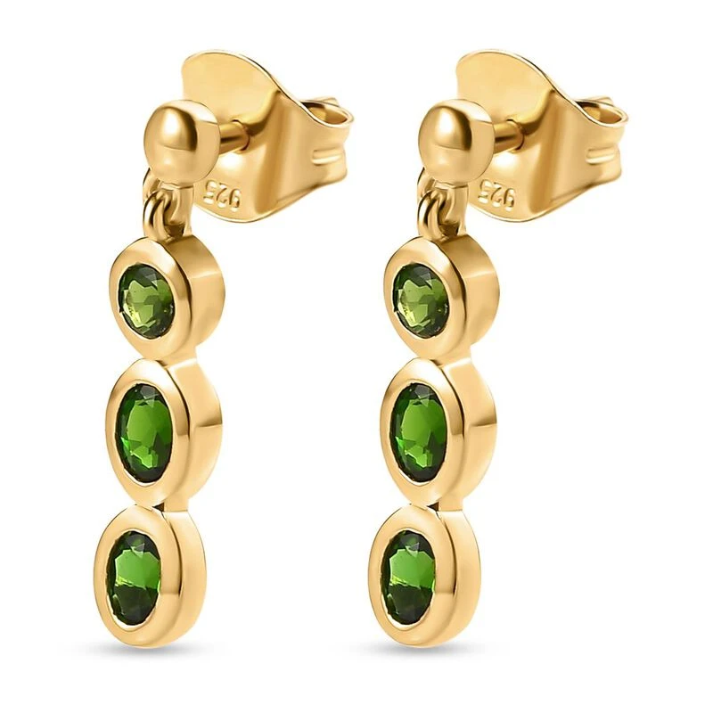 Natürliche Chromdiopsid-Ohrringe, 925 Silber Vergoldet Ca. 1.03 Ct