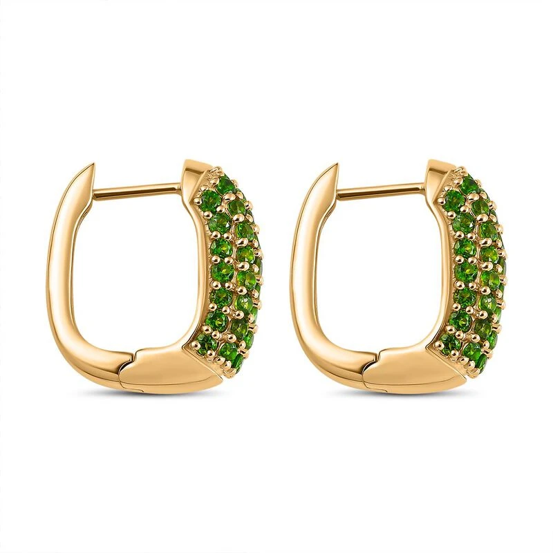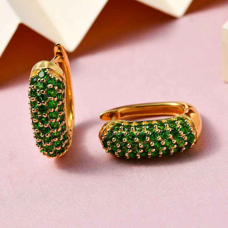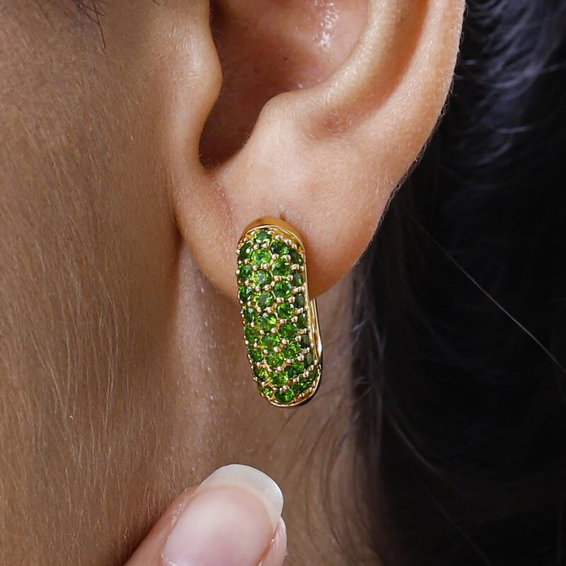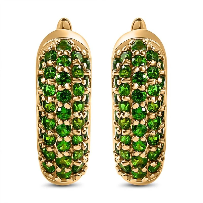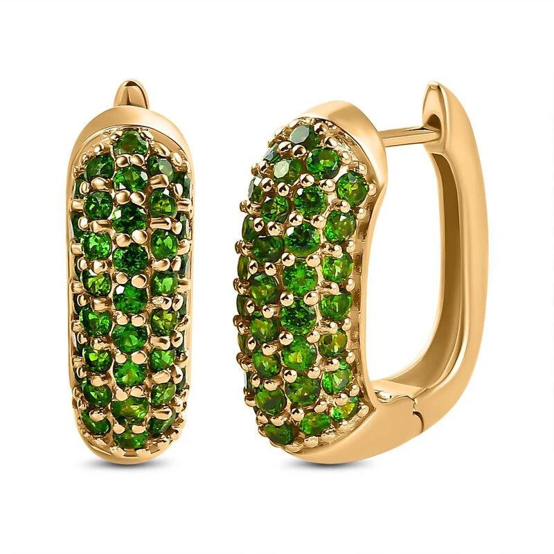 Diese Cluster-Ohrringe sind mit den tiefgrünen Farbtönen von 78 Chromdiopsiden geschmückt. Die perfekten Party-Schmuckstücke für Damen sind in 6,5 Gramm vergoldetem Silber gegossen. Stylen Sie sie mit dem sicheren Click-In-Verschluss.
