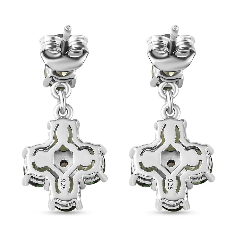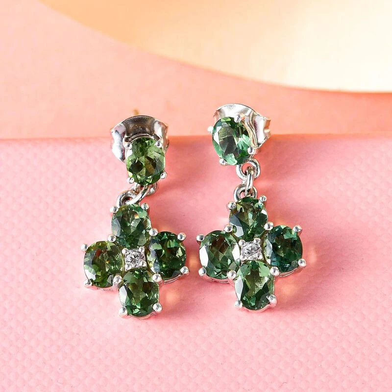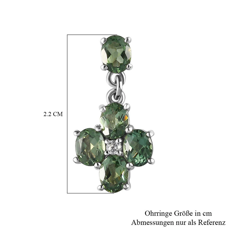 Natürliche, Grüne Apatit Und Weiße Zirkon-Ohrringe, 925 Silber Platiniert Ca. 3.87 Ct
