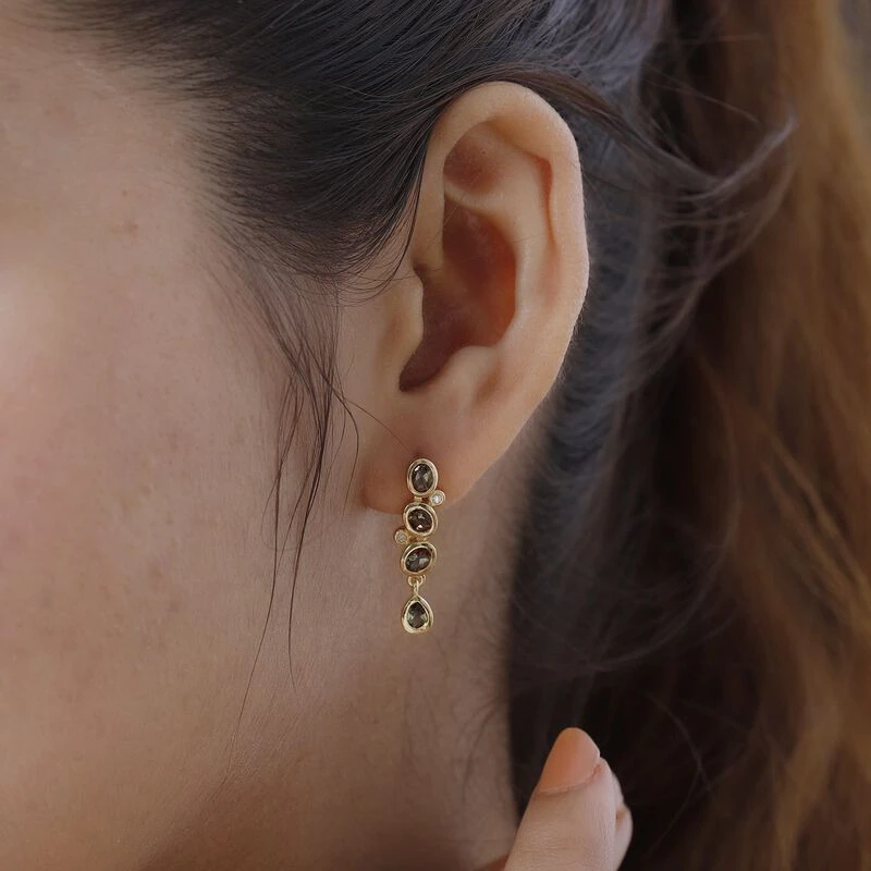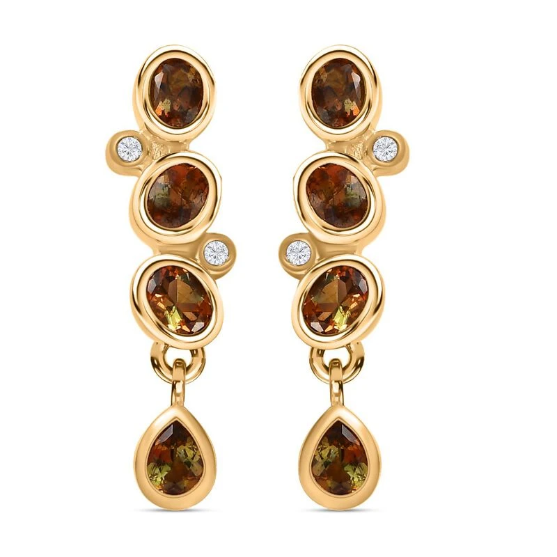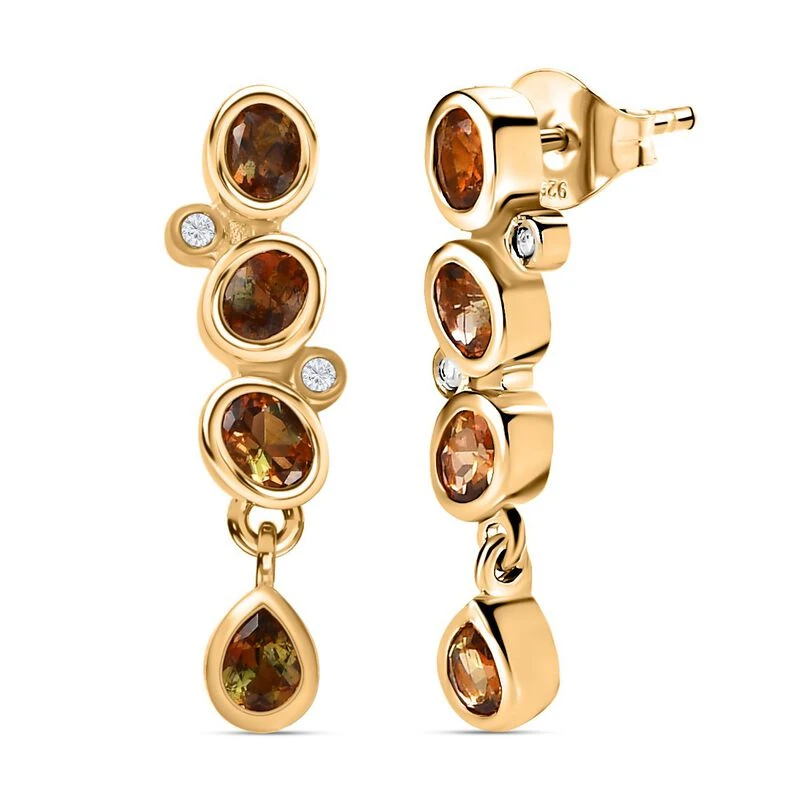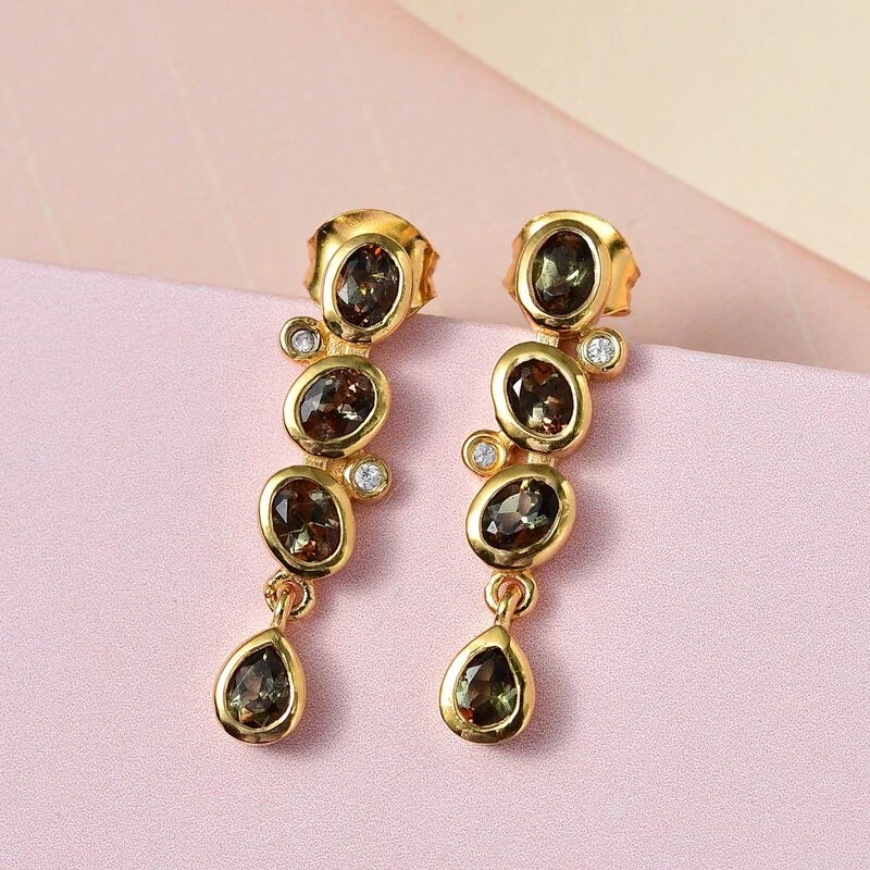 Natürliche Jenipapo Andalusit Ohrringe, 925 Silber Vergoldet Ca. 1.54 Ct
