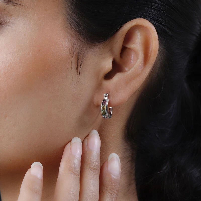 Natürliche Mehrfach-Turmalin Creolen, 925 Silber Platiniert, Ca. 1.19 Ct