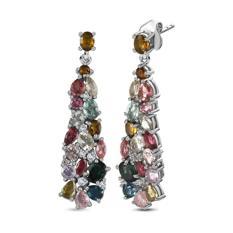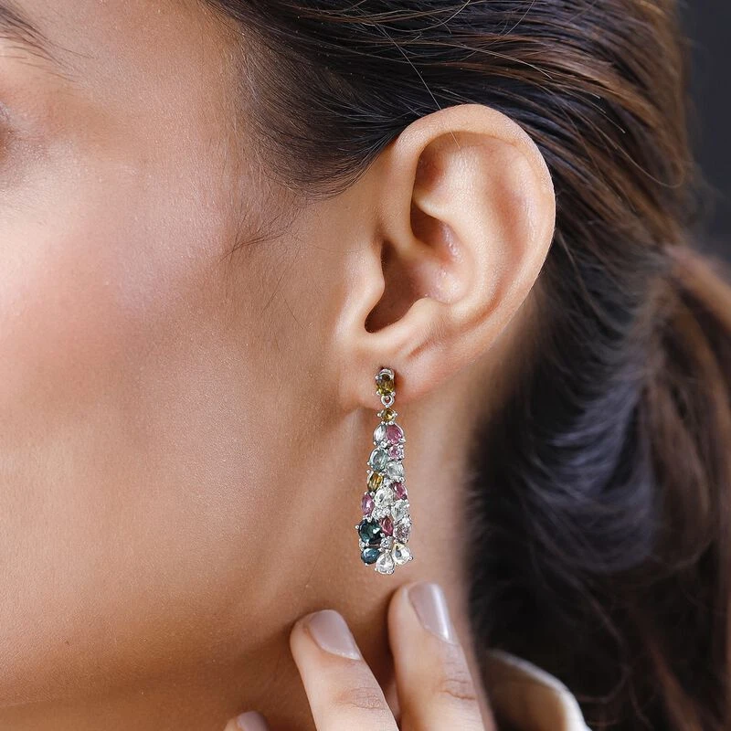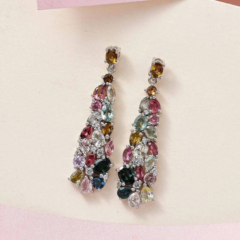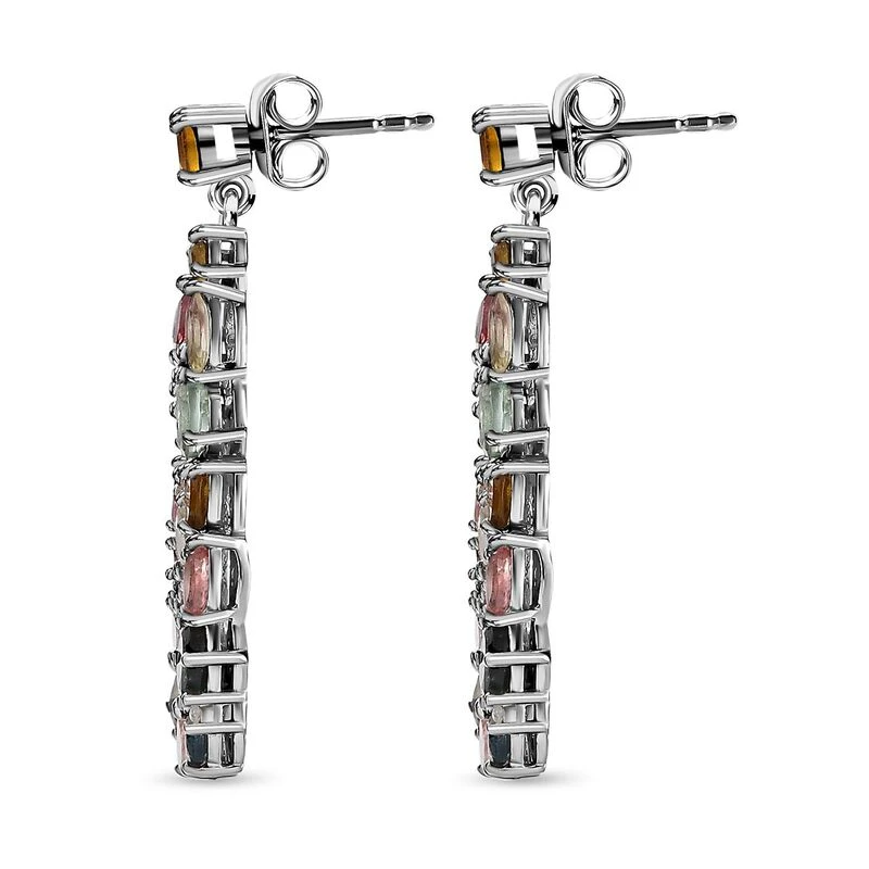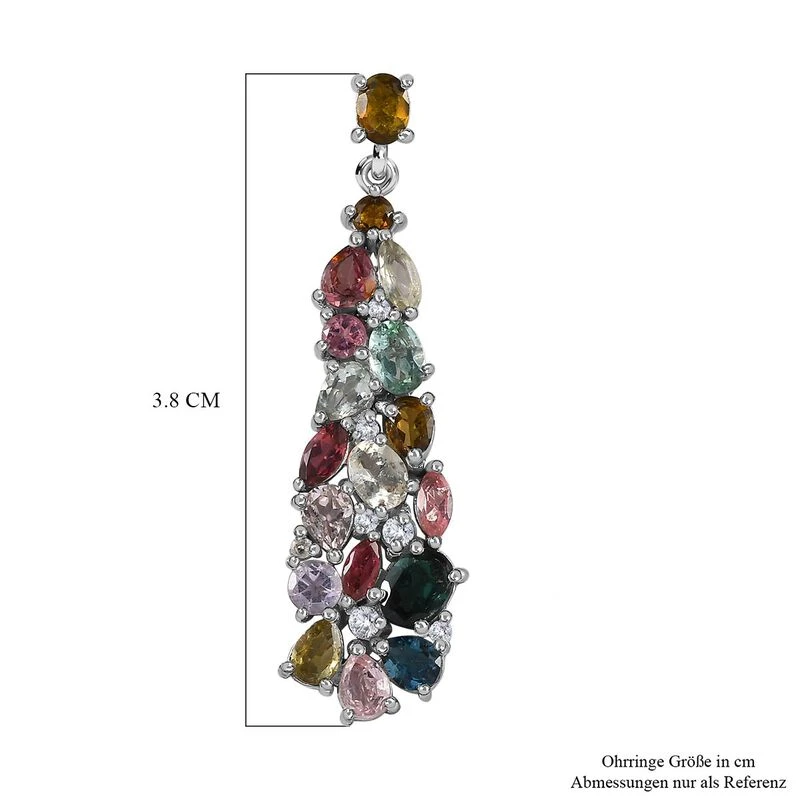 Natürliche Mehrfarbige-Turmalin Ohrringe, 925 Silber Platiniert Ca. 5.36 Ct
