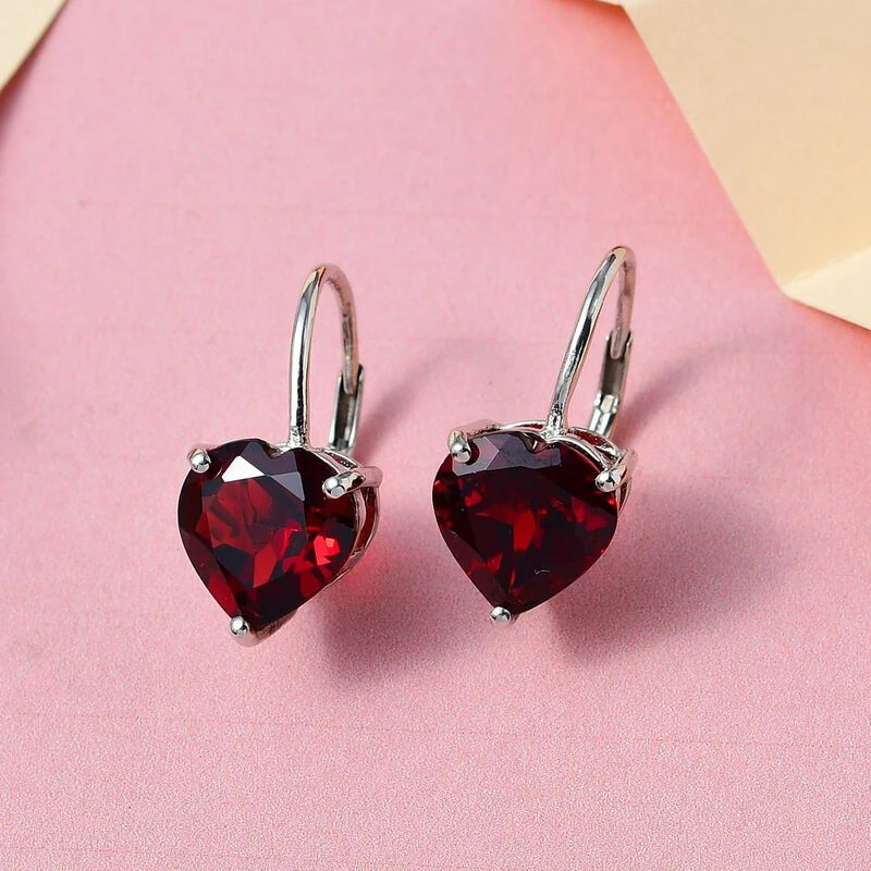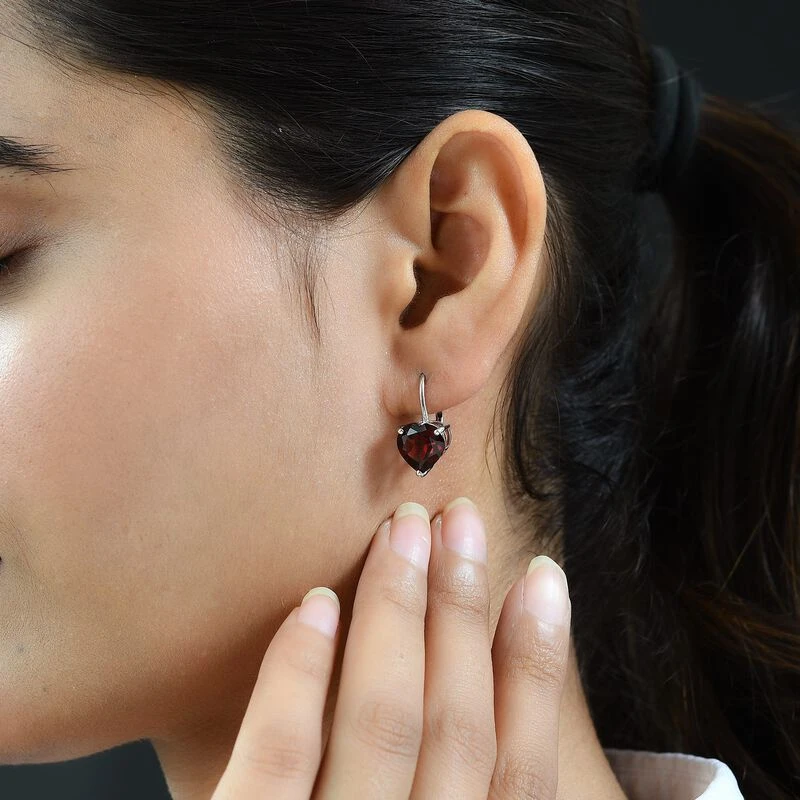 Natürliche Mosambik Granat Herz-Ohrringe, 925 Silber Platiniert Ca. 7.28 Ct