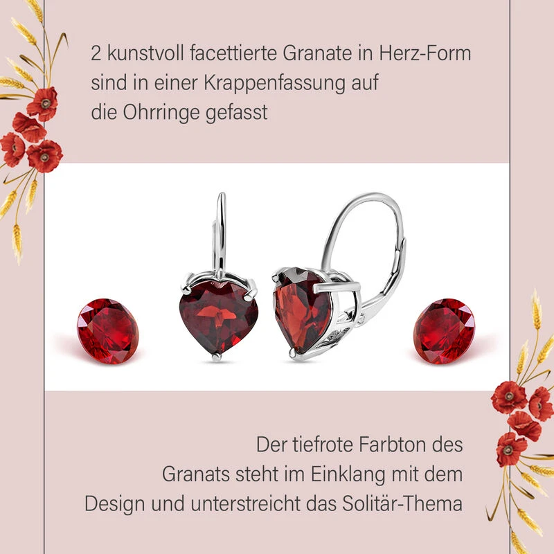 Solitär-Ohrhänger mit 7,28 Karat Mosambik Granat in 2,3g platiniertem Silber. Der Geburtsstein des Monats Januar zu erschwinglichen Preisen mit einzigartigen Designs – jetzt zugreifen!
