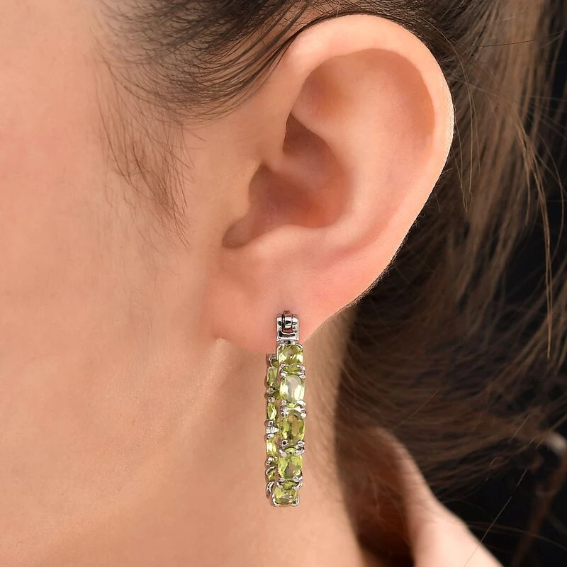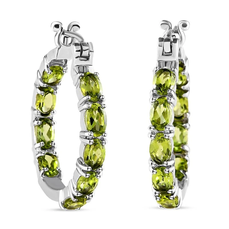 Natürliche Peridot-Creolen, Edelstahl, Ca. 8.55 Ct