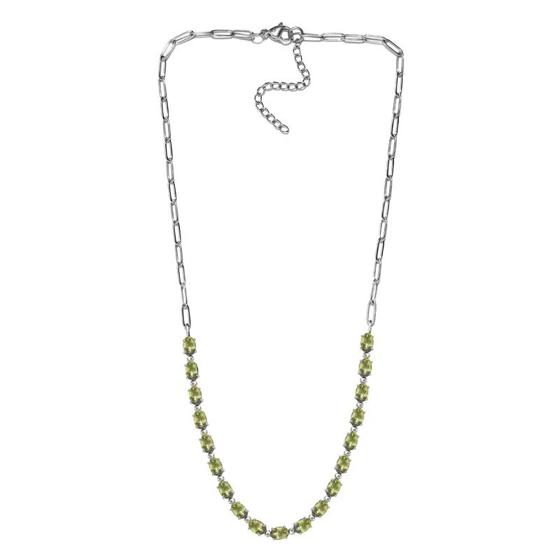 Natürliche Peridot Halskette, Ca. 45 Cm, Edelstahl, Ca. 8.43 Ct