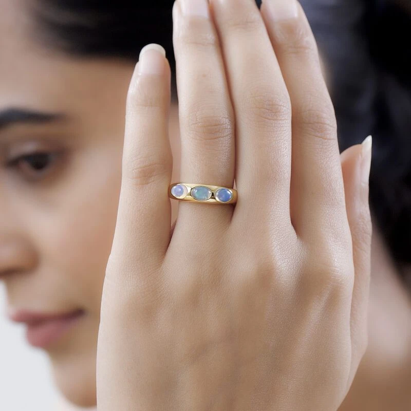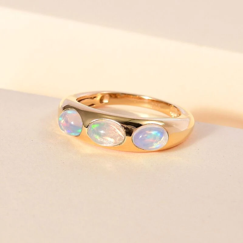 Natürlicher, äthiopischer Welo Opal Ring, 925 Silber Gelbgold Vermeil (Größe 19.00) Ca. 0.94 Ct