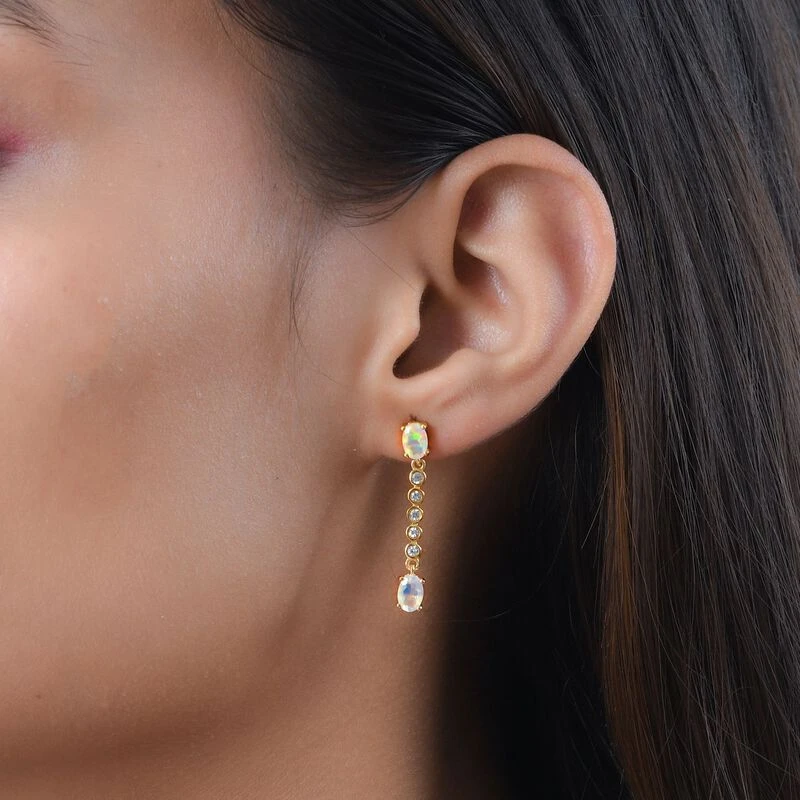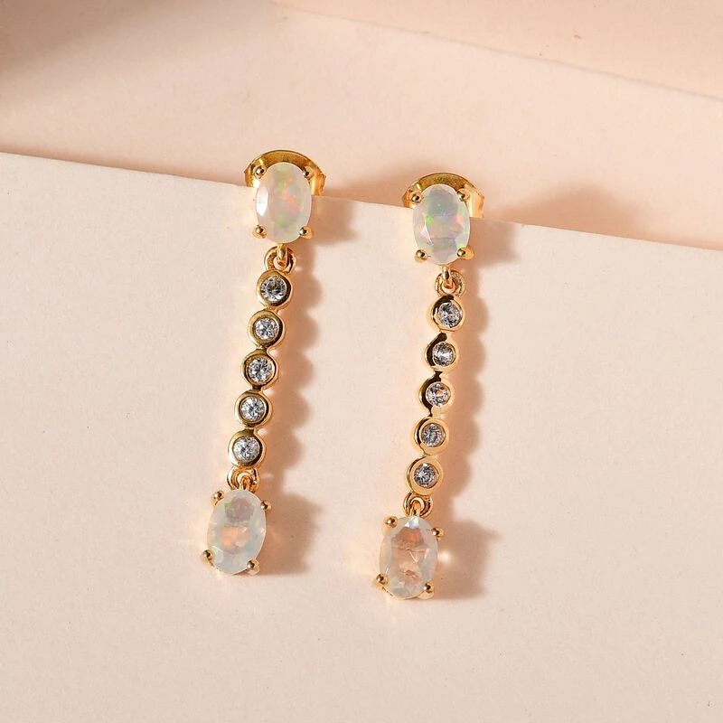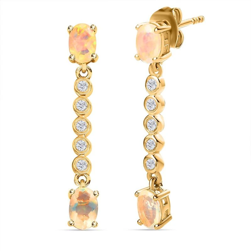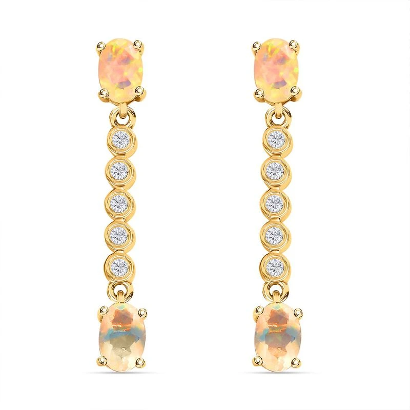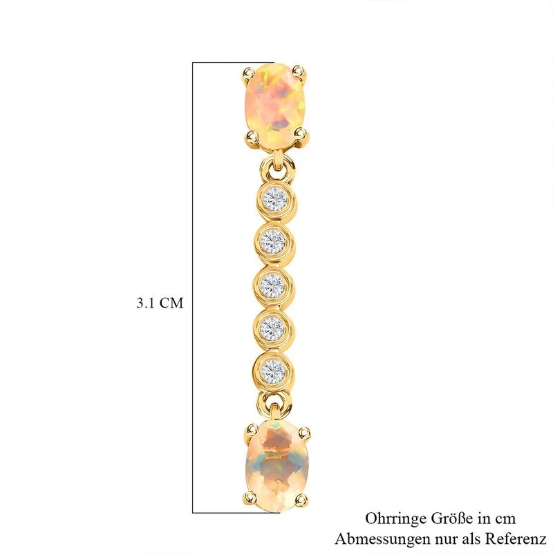Natürlicher, äthiopischer Welo Opal, Weißer Zirkon Ohrringe, 925 Silber Vergoldet Ca. 1.52 Ct