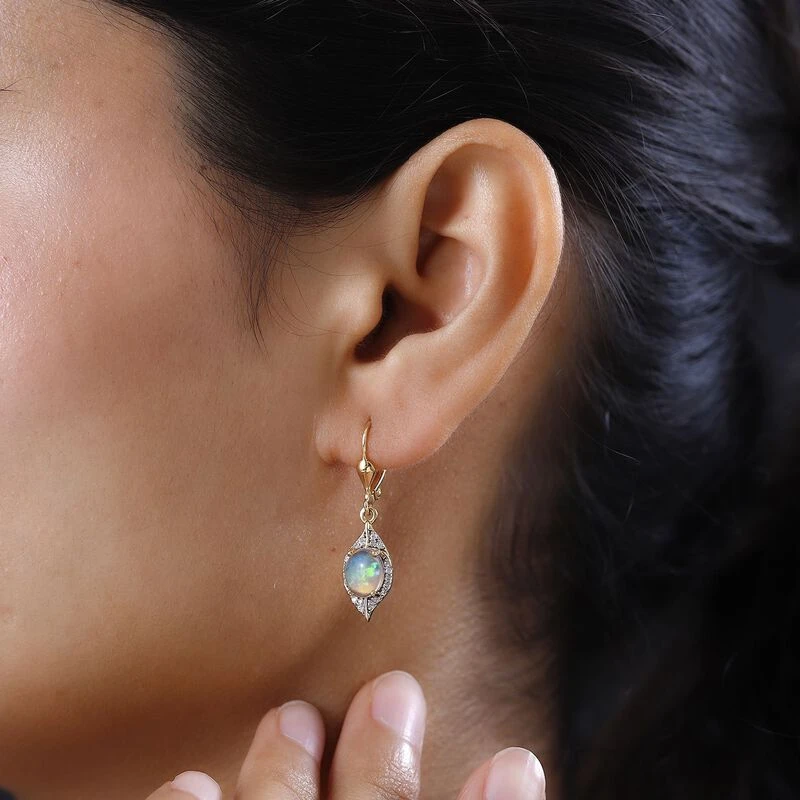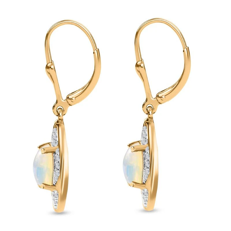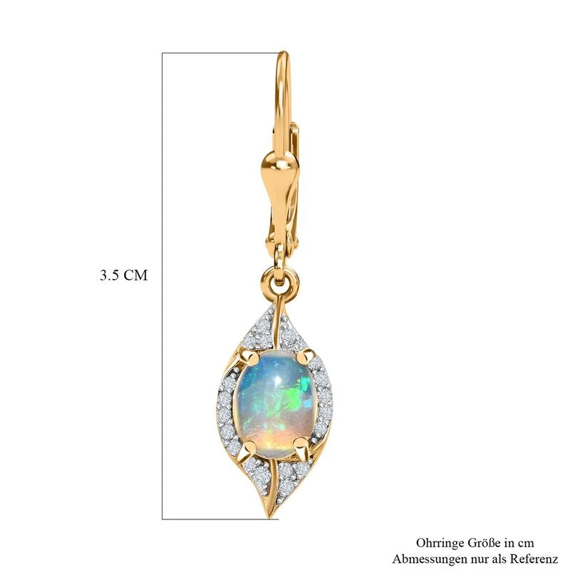 Natürlicher, äthiopischer Welo Opal, Weißer Zirkon Ohrringe, 925 Silber Vergoldet Ca. 2.06 Ct
