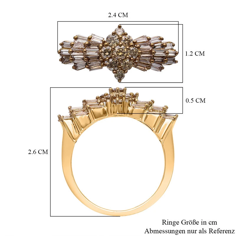 Natürlicher Champagner Diamant Ballerina-Ring, SGL Zertifiziert SI, 585 Gold (Größe 17.00) Ca. 1.00 Ct