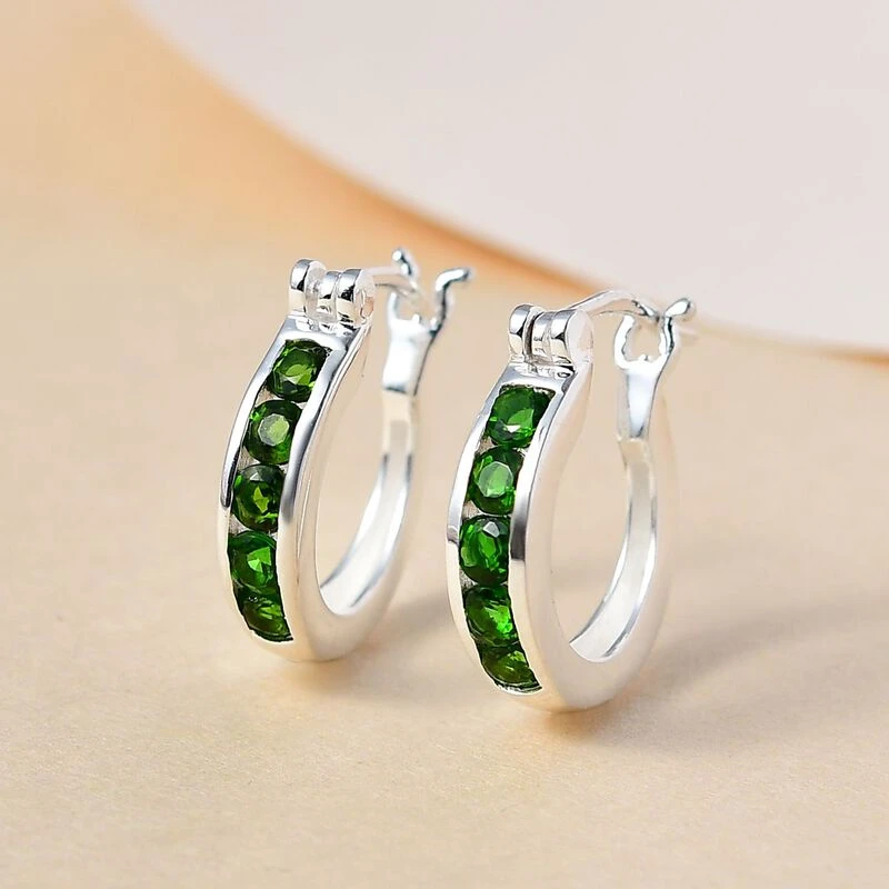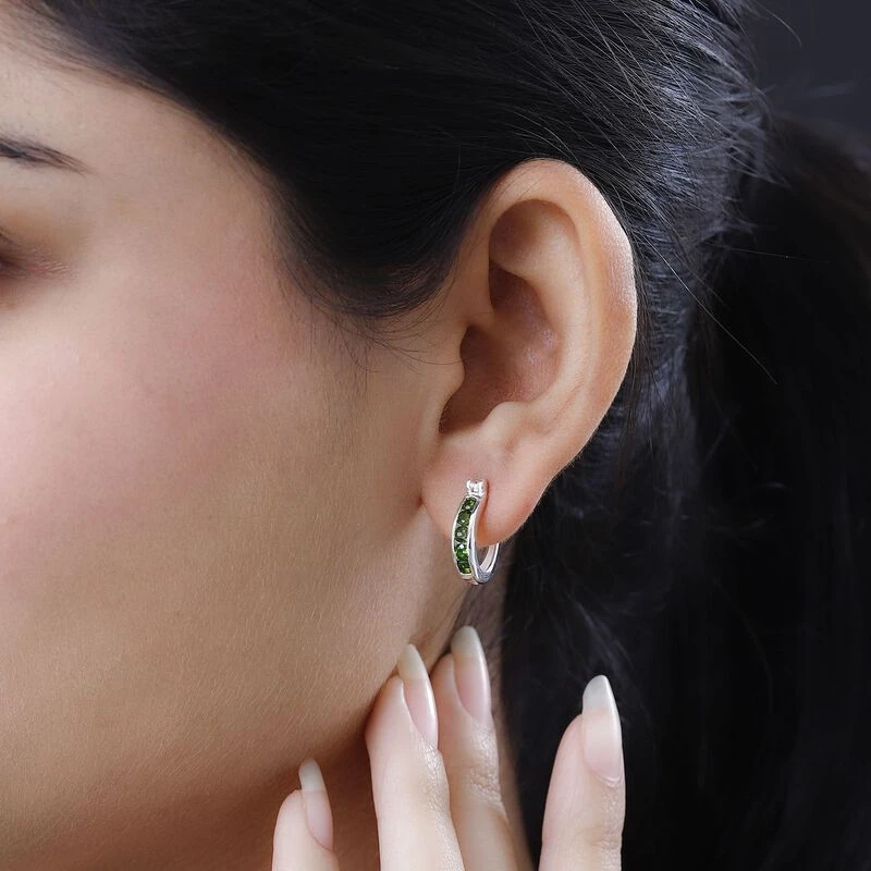 Natürlicher Chromdiopsid Ohrringe 925 Silber Ca. 1.02 Ct