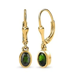 Natürlicher Chromdiopsid Ohrringe, 925 Silber Vergoldet, Ca. 1.00 Ct