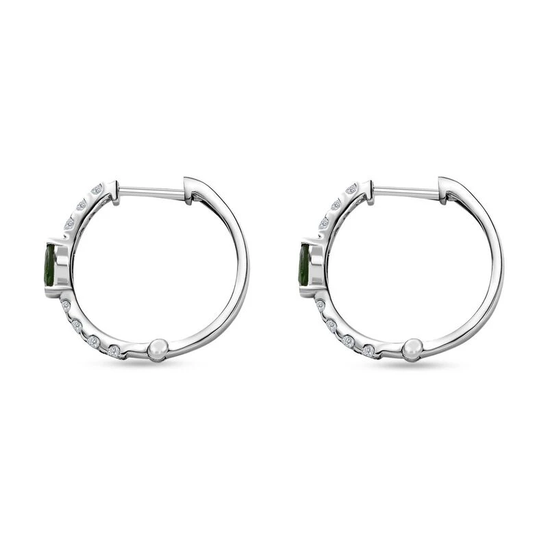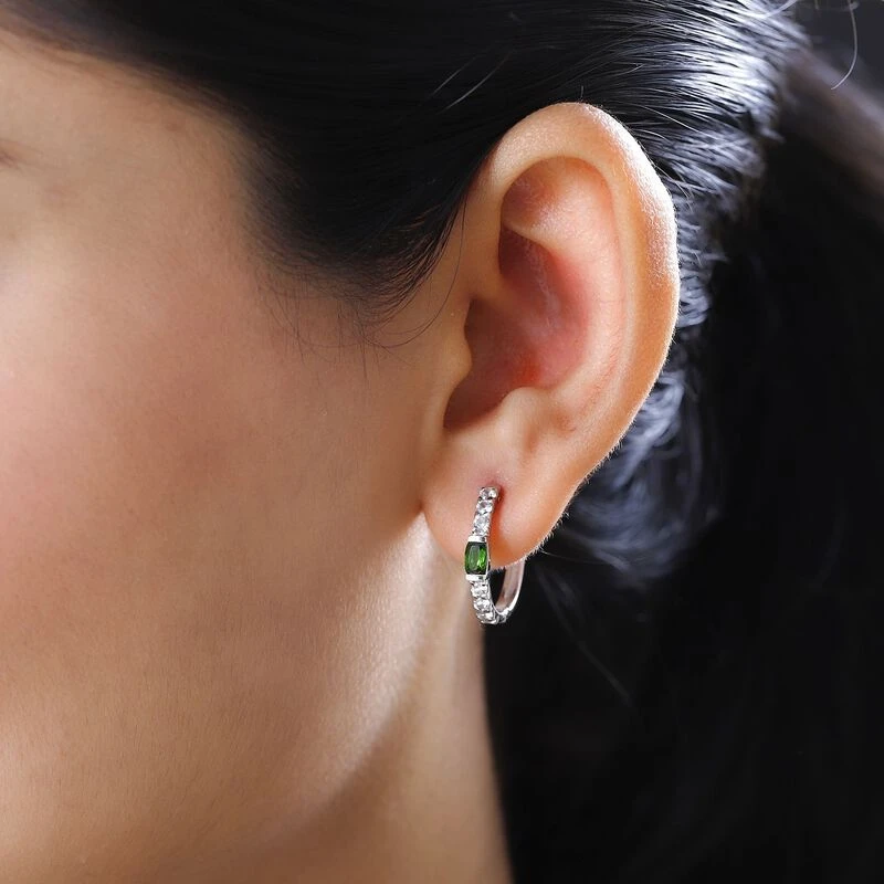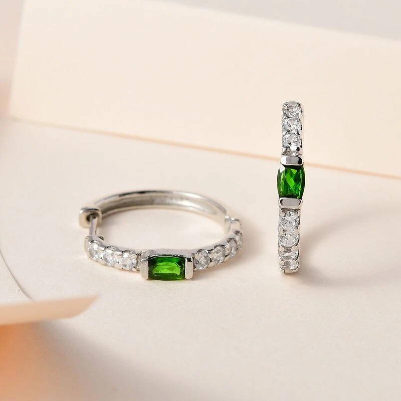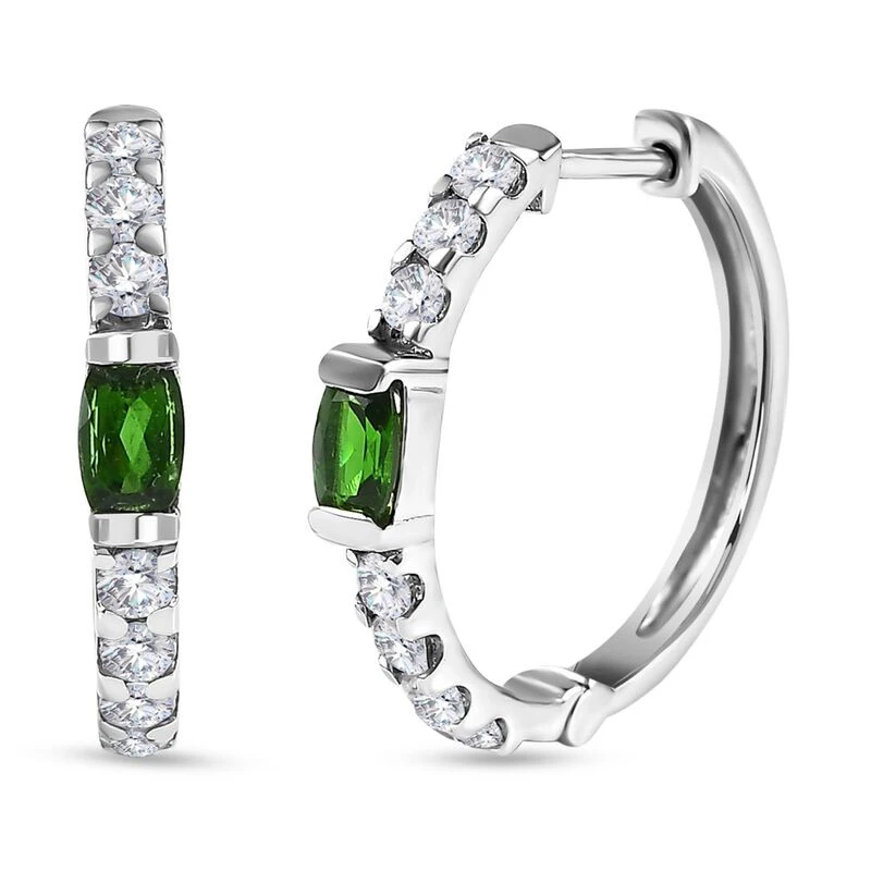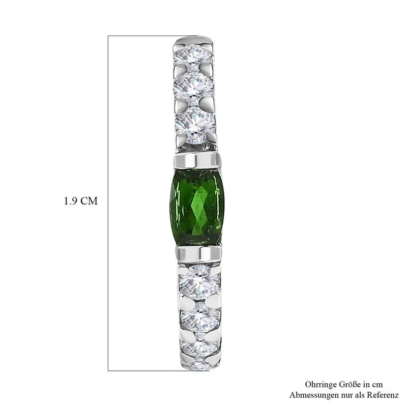 Natürlicher Chromdiopsid, Weißer Zirkon Ohrringe, 925 Silber Platiniert, Ca. 1.56 Ct
