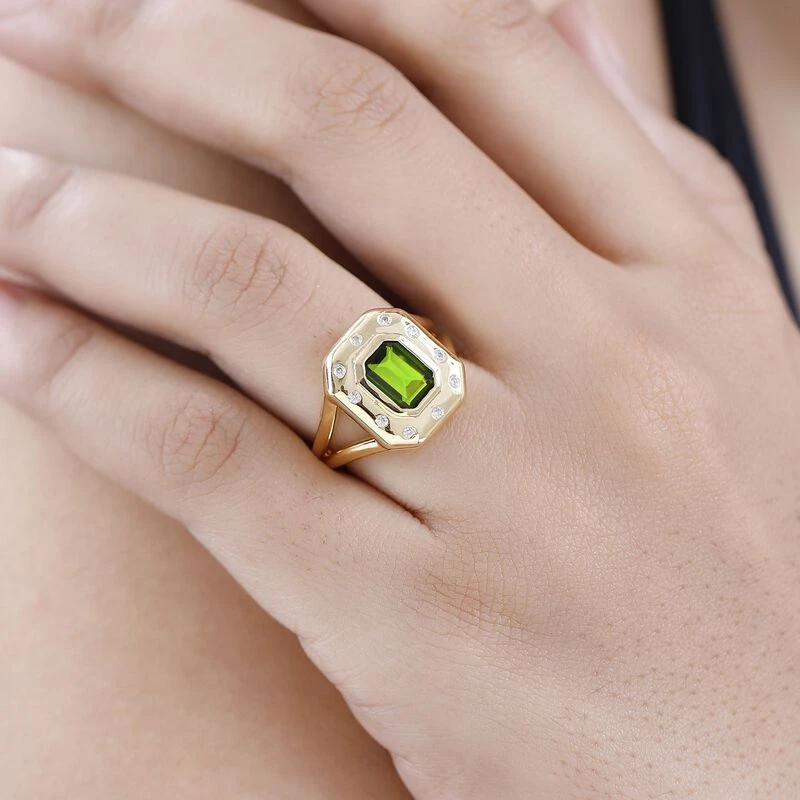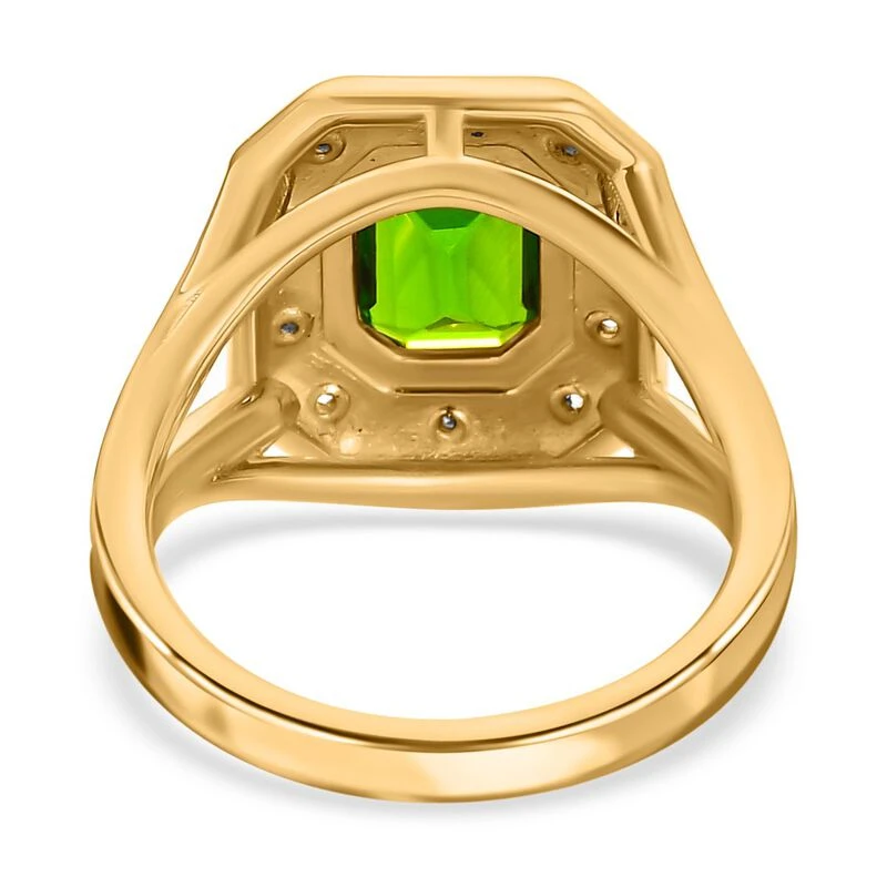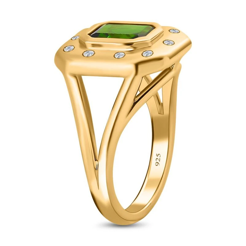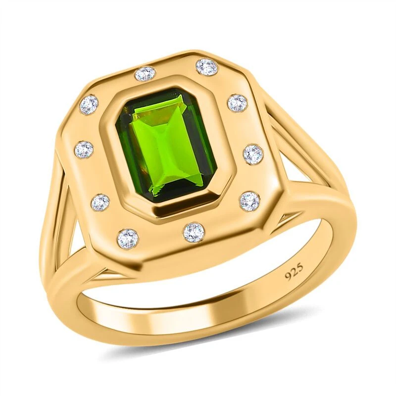 Natürlicher Chromdiopsid, Weißer Zirkon Ringe 925 Silber Vergoldet (Größe 17.00) Ca. 1.61 Ct