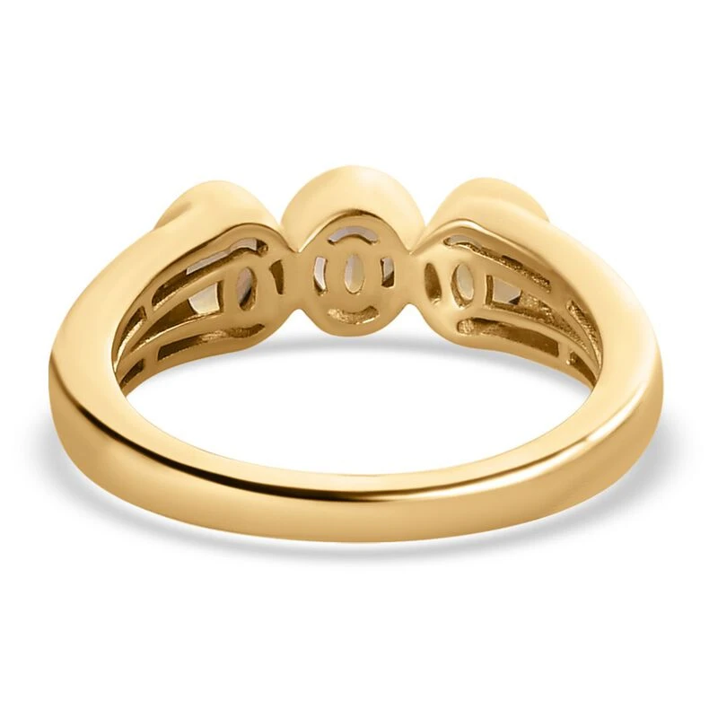 Dieser Trilogie-Ring präsentiert die Schönheit von 3 goldenen Tansaniten, die extrem selten sind! Die Schultern des Rings glänzen mit 4 Zirkonen. Dieser 3 Gramm Ring hat einen Rahmen aus vergoldetem Silber.
