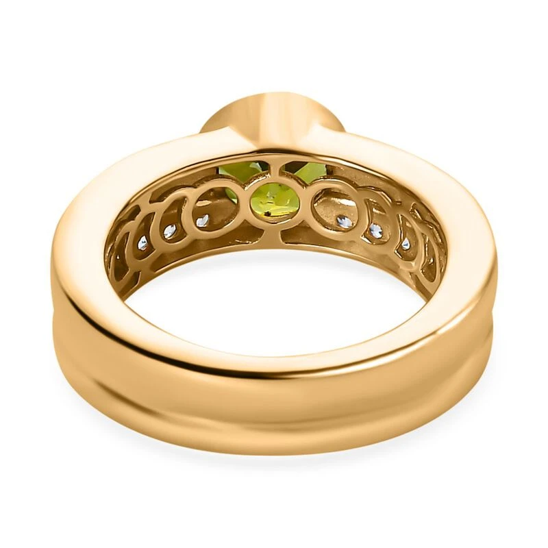Natürlicher Peridot, Weißer Zirkon Ring, 925 Silber Vergoldet, (Größe 20.00) Ca. 1.73 Ct