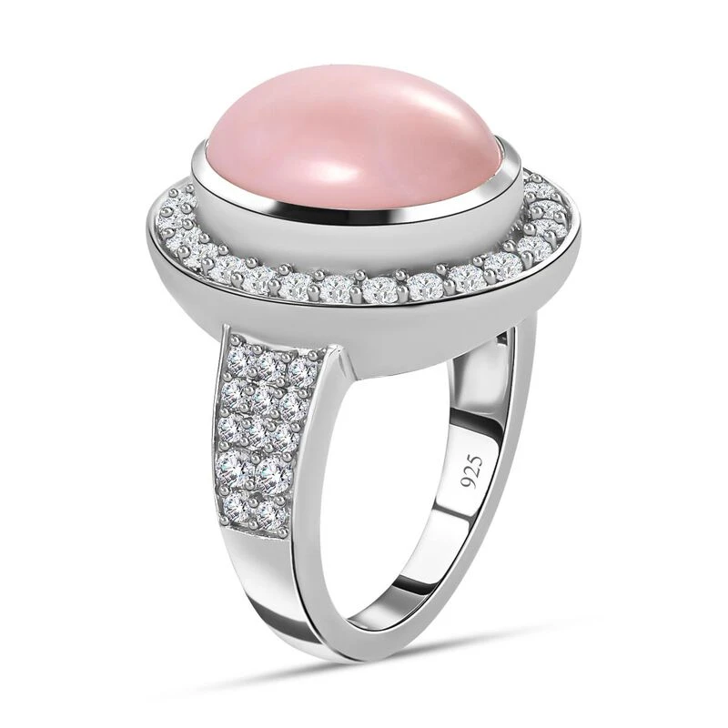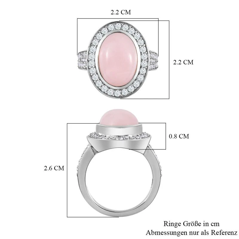 Natürlicher Peruanischer Rosa-Opal Und Weißer Zirkon-Ring, 925 Silber Platiniert (Größe 17.00) Ca. 5.83 Ct