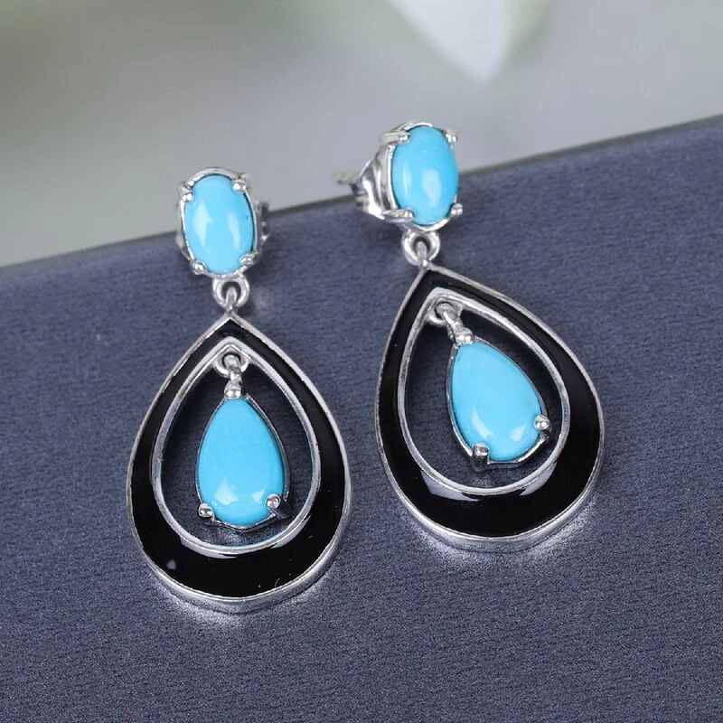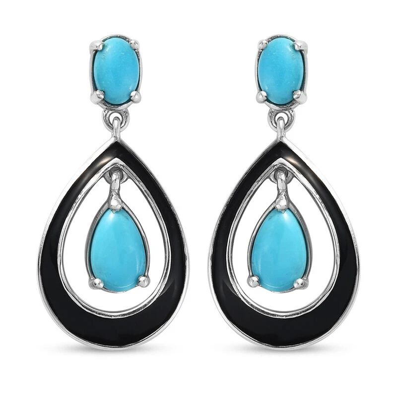Natürlicher Sleeping Beauty Türkis Ohrringe 925 Silber Platiniert Ca. 2,34 Ct