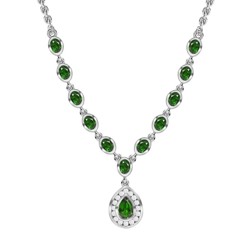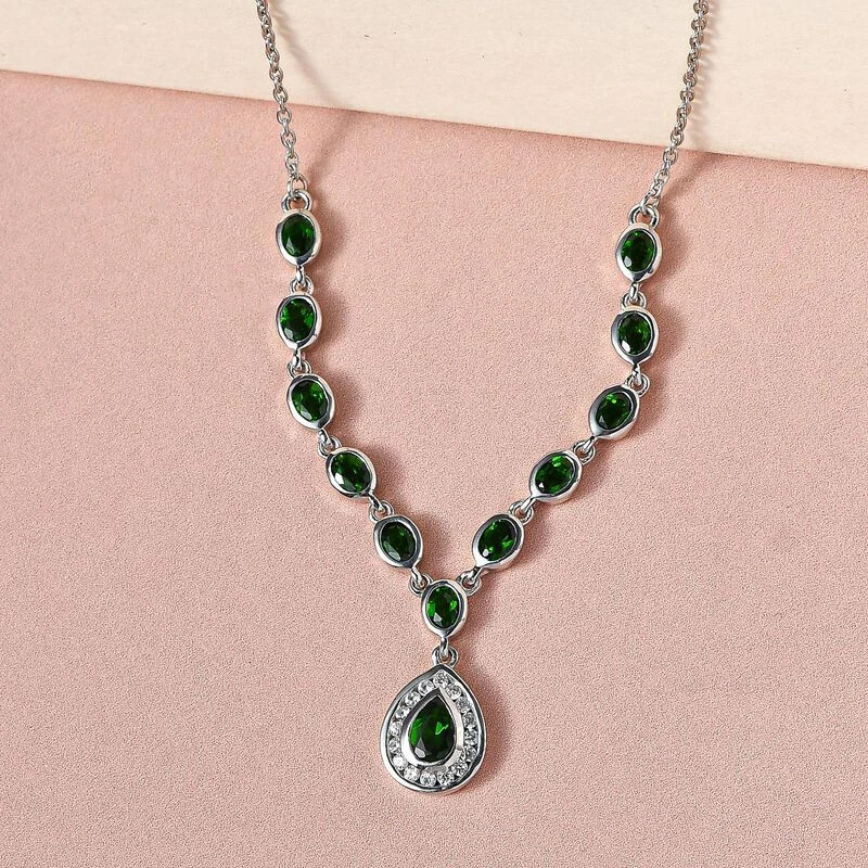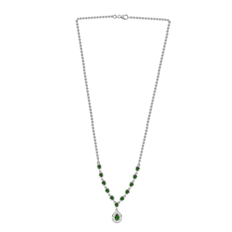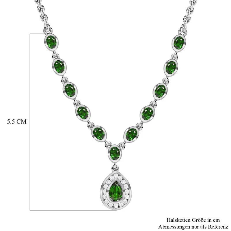 Natürliches Chromdiopsid Collier, Ca. 45 Cm, 925 Silber Platiniert, Ca. 2.89 Ct