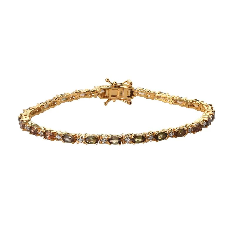 Natürliches Jenipapo Andalusit Und Weißes Zirkon Armband, Ca. 19 Cm, 925 Silber Gelbgold Vermeil Ca. 6.02 Ct