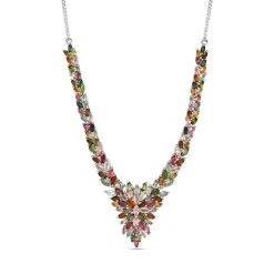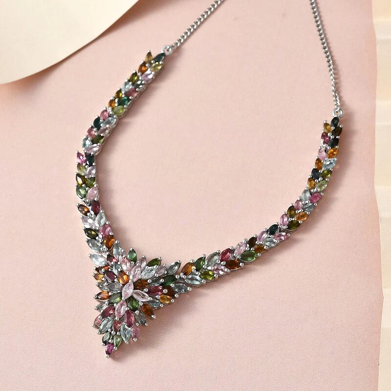 Florale Halskette mit Mehrfach-Turmalin (11,67 ct.) in platiniertem Silber (16,5g). Statement-Schmuckdesigns mit Top-Qualität zu unglaublichen Preisen.