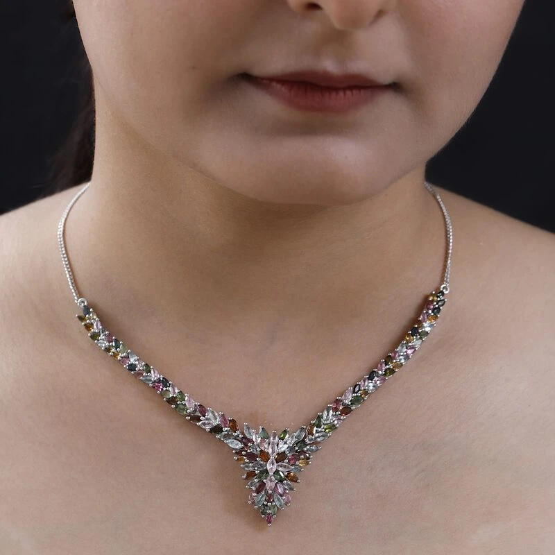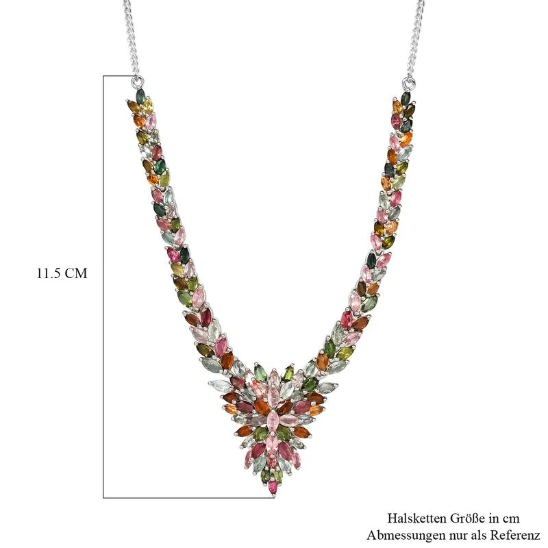 Natürliches Mehrfarbiges Turmalin Collier, Ca. 45 Cm, 925 Silber Platiniert, Ca. 11.67 Ct