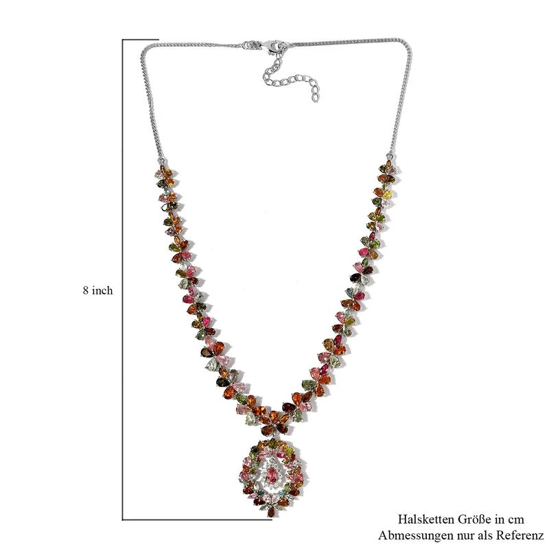 Natürliches Mehrfarbiges Turmalin Und Moissanit Collier, Ca. 45 Cm, 925 Silber Platiniert, Ca. 28.75 Ct