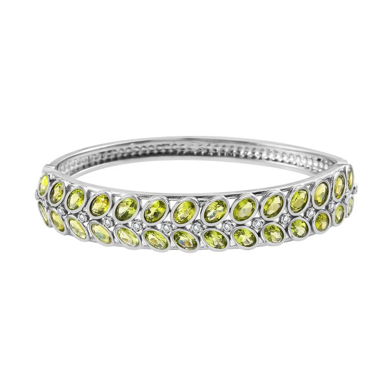 Die von der Natur inspirierten olivgrünen Farbtöne werden durch 28 Peridote, die sich mit 15 Zirkonen abwechseln, in Ihren Stil gebracht. Das aufklappbare Design dieses Statement-Armreifs mit einem Click-Verschluss macht das Styling mühelos.