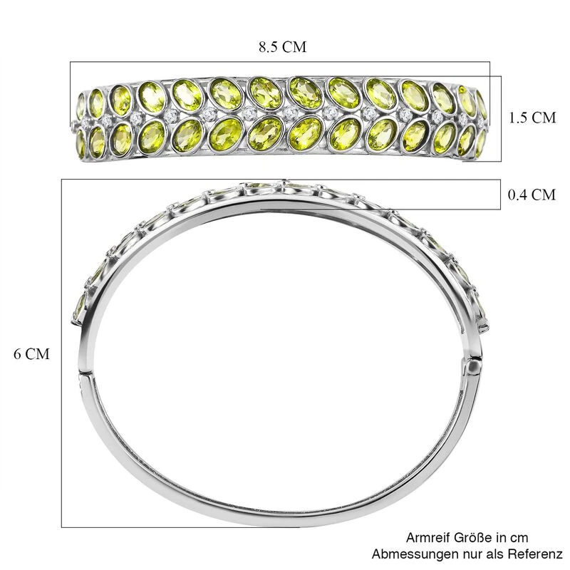 Natürliches Peridot, Weißer Zirkon Armreif, Ca. 19 Cm, Edelstahl Ca. 13.67 Ct
