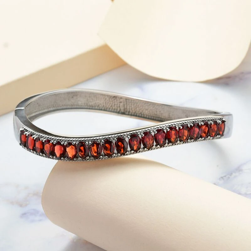 Natürliches Rotes Granat-Armreif, Ca. 19 Cm Edelstahl Ca. 9.31 Ct