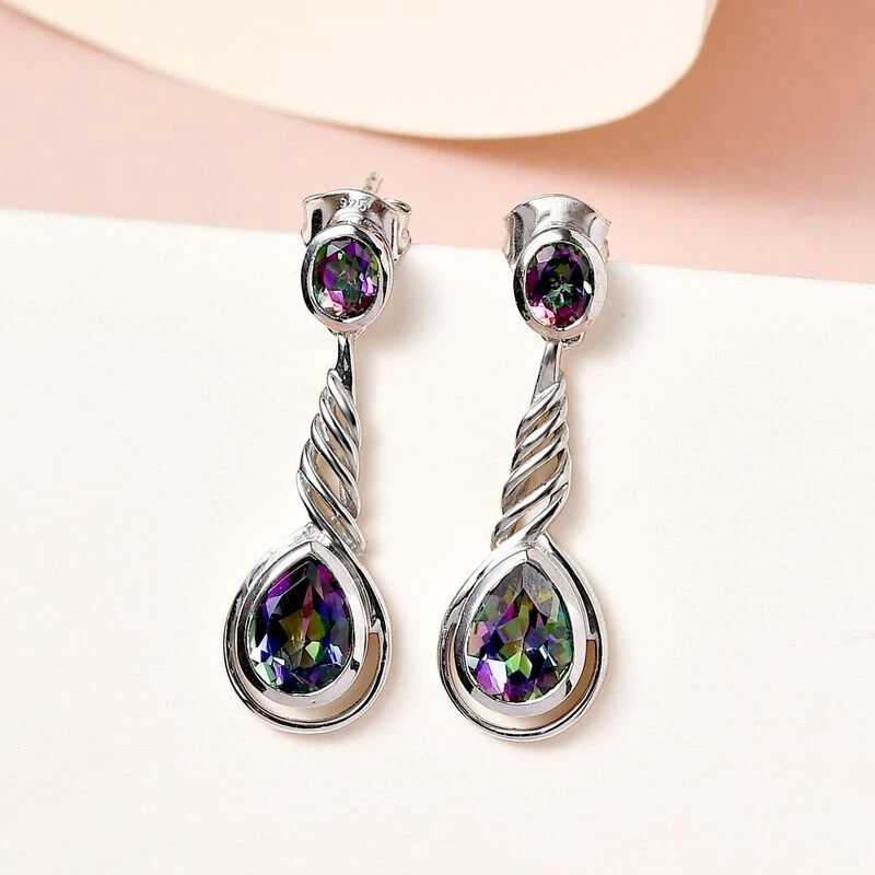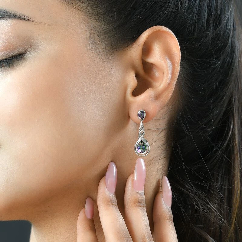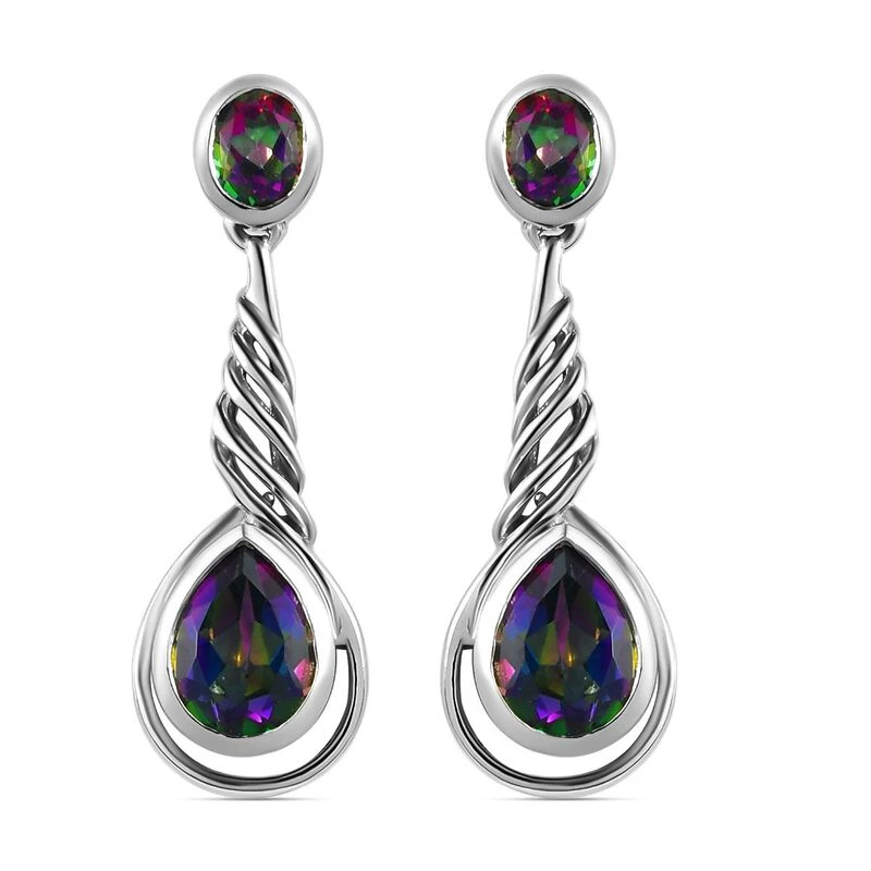Nordlicht Mystik Topas Ohrringe, 925 Silber Platiniert Ca. 3.36 Ct