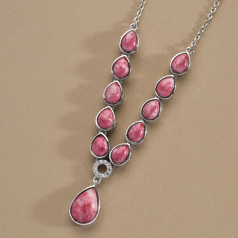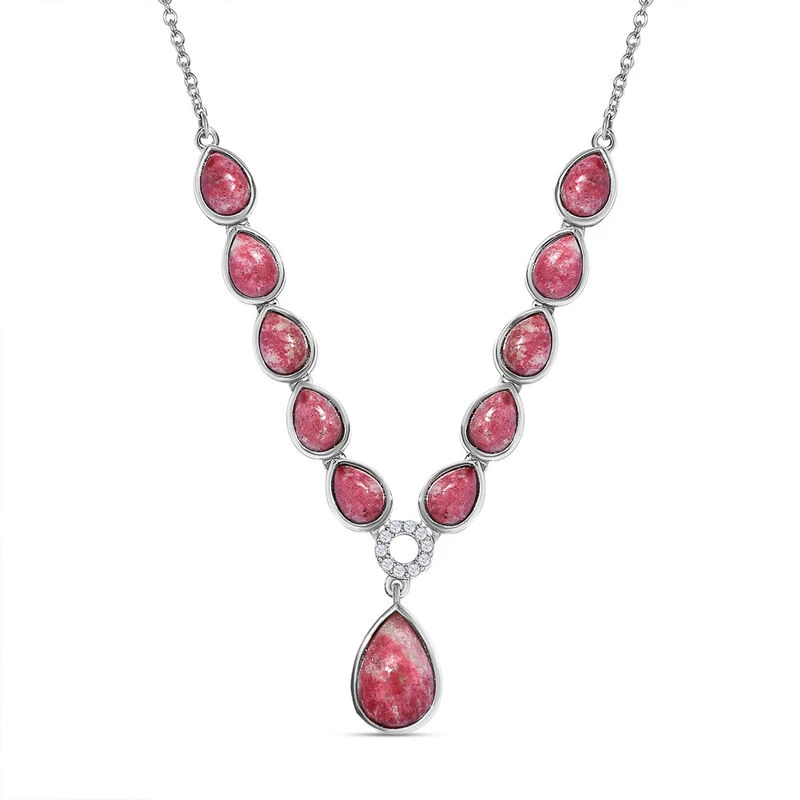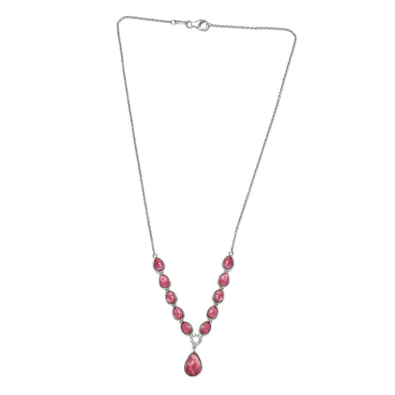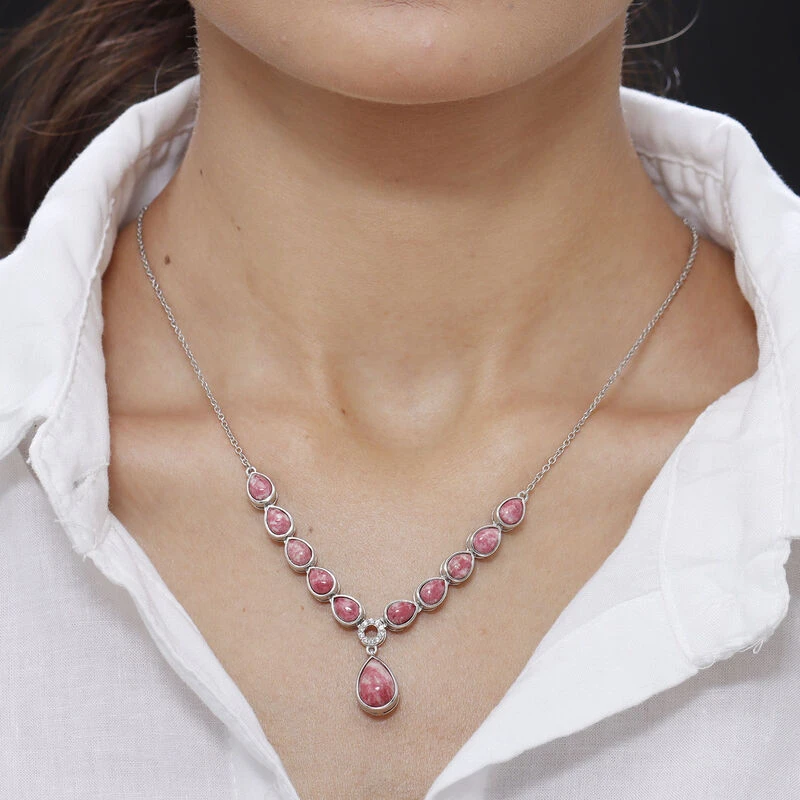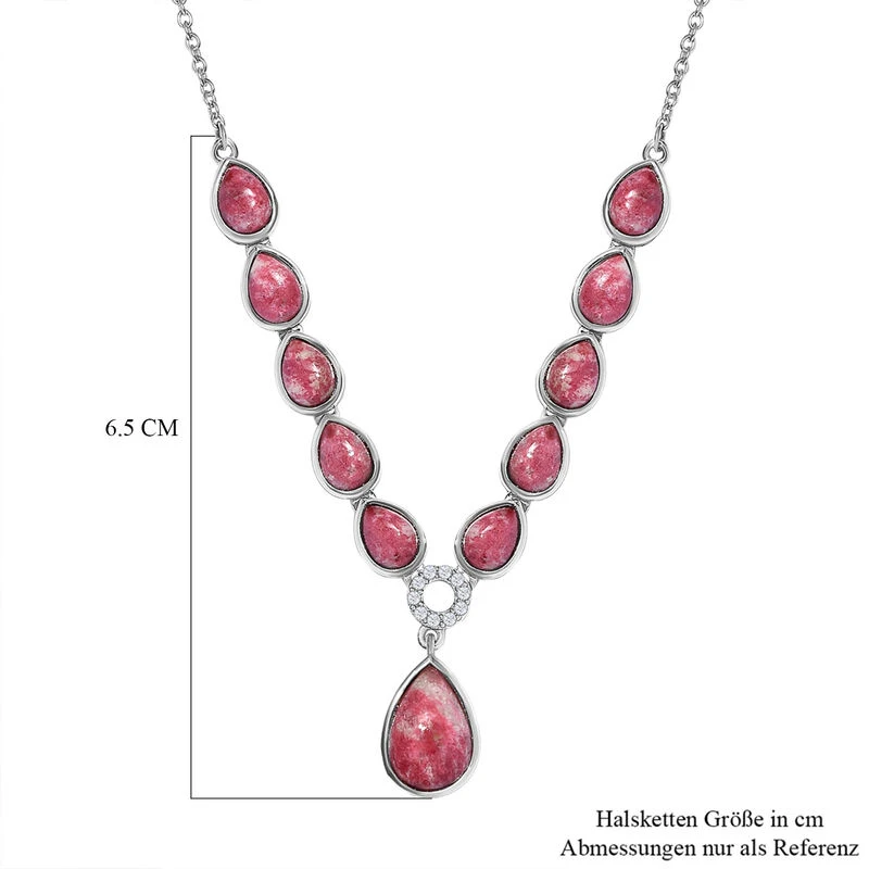 Norwegische Thulit-Halskette, Ca. 45 Cm, 925 Silber Platiniert Ca. 14.54 Ct