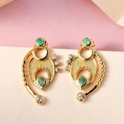 AA Kolumbianischer Smaragd Ohrringe 925 Silber Vergoldet Ca. 0.88 Ct