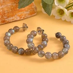 Labradorit Creolen, Edelstahl Ca. 70.00 Ct
