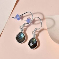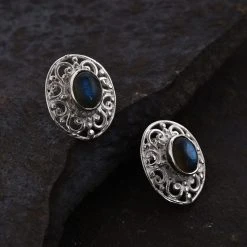 Labradorit Ohrringe 925 Silber Ca. 3.36 Ct
