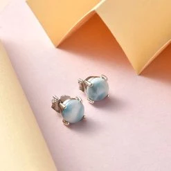 Larimar Ohrringe, 925 Silber Platiniert Ca. 3.10 Ct
