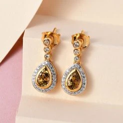 Natürliche Goldene Tansanit Und Weiße Zirkon Ohrringe, 925 Silber Gelbgold Vermeil Ca. 1.24 Ct