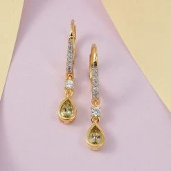 AA Natürliche Goldene Tansanit, Weiße Zirkon Ohrringe, 925 Silber Gelbgold Vermeil Ca. 1.15 Ct