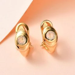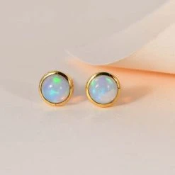 AA Natürlicher, äthiopischer Welo Opal Ohrringe, 925 Silber Vergoldet Ca. 0.59 Ct