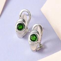 AA Natürlicher Chromdiopsid Ohrringe, 925 Silber Platiniert, Ca. 0.53 Ct