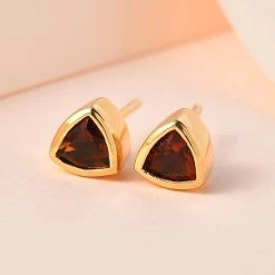 AA Madeira Citrin Ohrringe 925 Silber Vergoldet Ca. 0.79 Ct