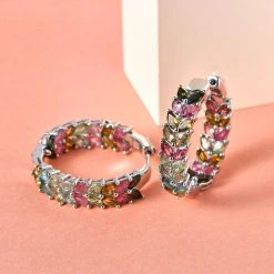 Natürlicher Mehrfach-Turmalin Creolen, 925 Silber Platiniert Ca. 8.96 Ct