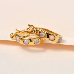 Natürlicher, äthiopischer Welo Opal Ohrringe, 925 Silber Vergoldet Ca. 0.52 Ct