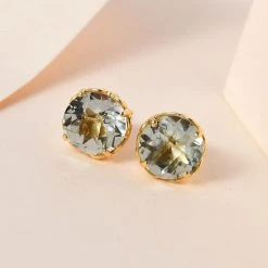 Prasiolith Ohrringe 925 Silber Gelbgold Vermeil Ca. 3.76 Ct