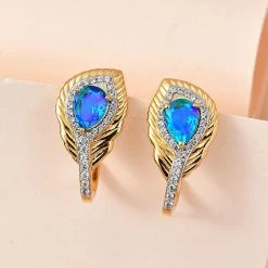 Paraiba Pfau Triplet Quarz Ohrringe, 925 Silber Vergoldet Ca. 2.92 Ct