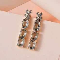Prasiolite, Weißer Zirkon Ohrringe 925 Silber Vergoldet Ca. 12.69 Ct