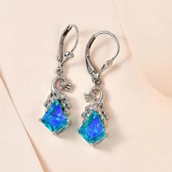 Paraiba Pfau Triplet Quarz Ohrringe 925 Silber Platiniert Ca. 4.70 Ct